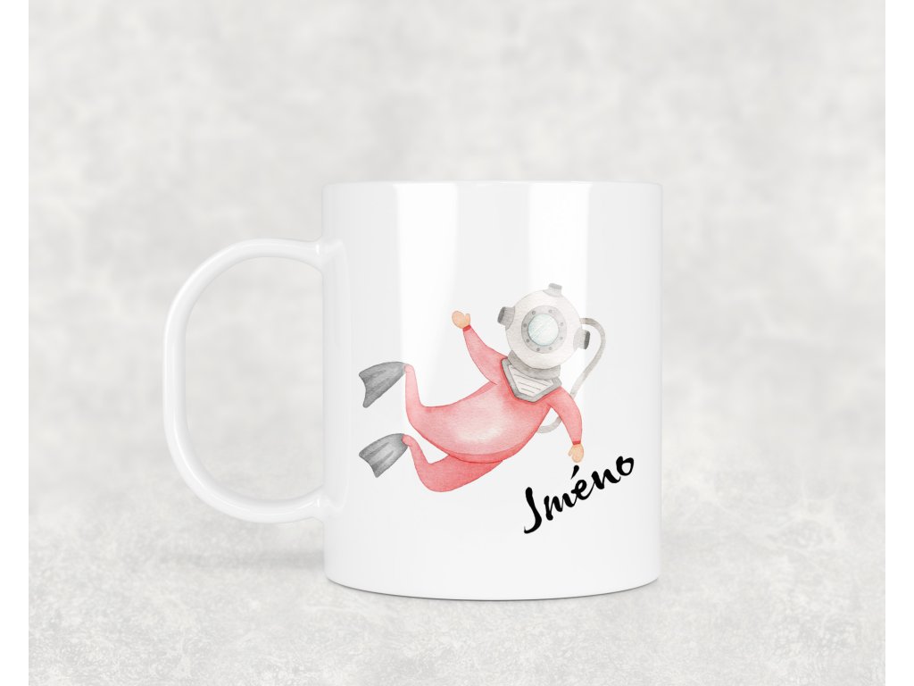Plastový hrnček s vlastným menom Potápač ružový 330ml