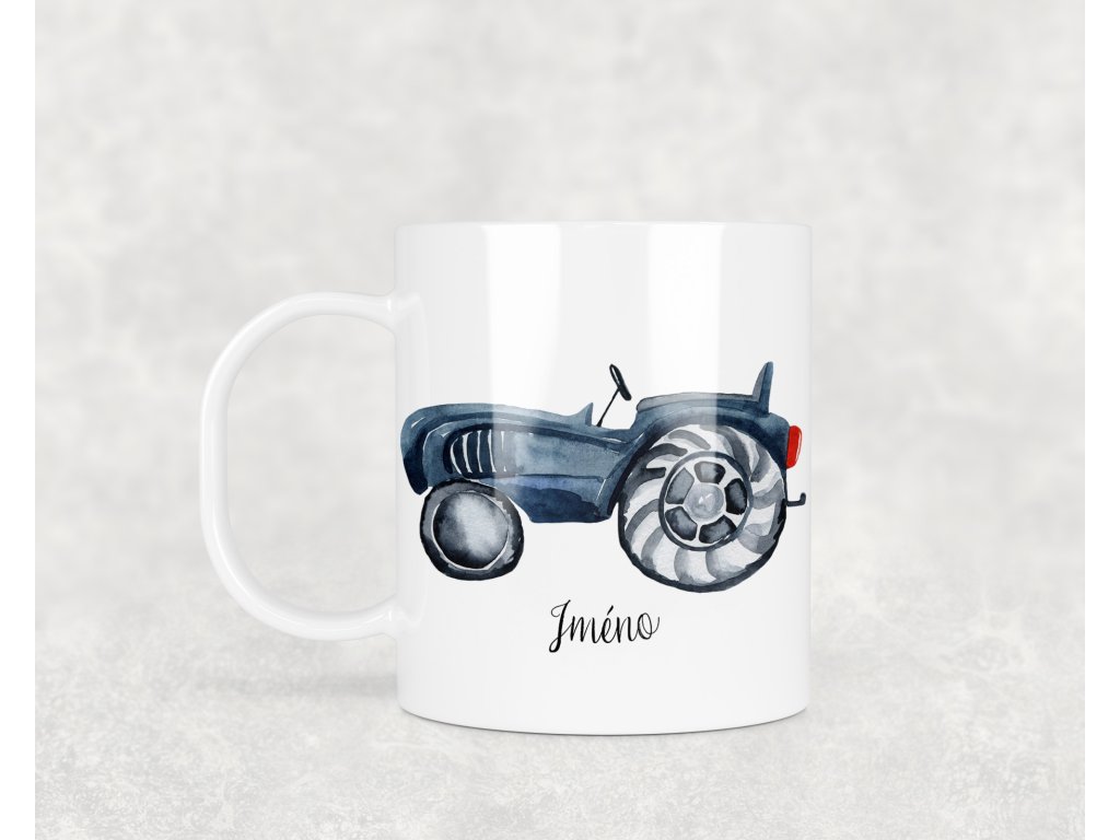 Plastový hrnček s vlastným menom s modrým traktorom 330ml